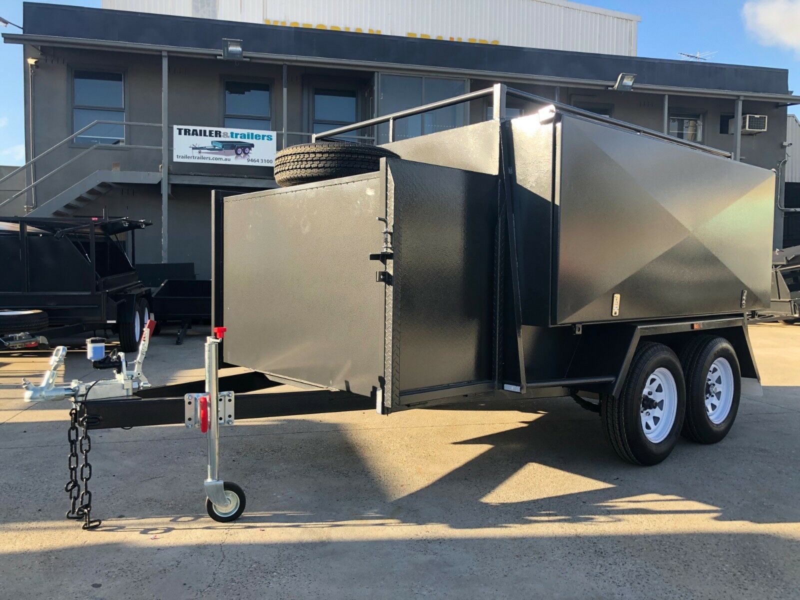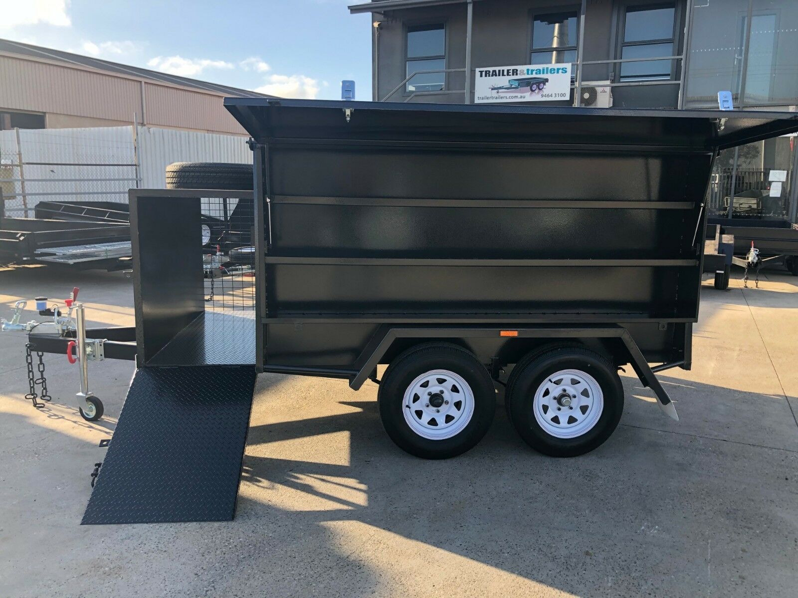 We offer both single and dual axle caged units all coming stock standard with some great features. All feature security key locks with internal shelving and a side compartment with a door. Plus there’s a lawn mower platform with ramp allowing easy movement of equipment on and off.
